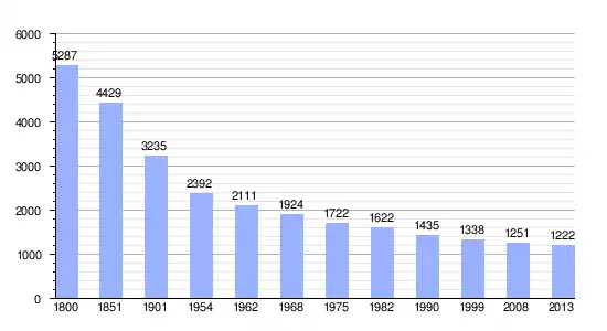| Gráfica de evolución demográfica de Passais-Villages entre 1800 y 2013 |