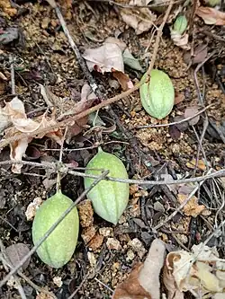 Planta herbácea trepadora o rastrera, hasta de 3 m de largo; raíz voluminosa, leñosa, de la que parten numerosos tallos anuales; tallo hispídulo con pelos uncinados; estípulas de 5 a 9(13) mm de largo y 1.3 a 4.5(9) mm de ancho, peciolos de 2 a 5(6.5) cm de largo, llevando hacia su ápice un par de glándulas nectariales claviformes o urceoladas de 0.8 a 1.5 mm de largo y de ancho, hoja ovada en contorno general, de 4 a 7(16) cm de largo y 4 a 11.5(16) cm de ancho, cordada en la base, profundamente trilobada con los lóbulos oblongos, agudos a obtusos en el ápice, margen entero o irregularmente dentado o denticulado, con 3 o 5 nervaduras principales; flores solitarias o por pares, sobre pedúnculos de 15 a 35 mm de largo, brácteas por lo general 3, de 2.2 a 7 mm de largo, a veces decíduas; flores blanquecinas o de color crema, de 2 a 4 cm de diámetro; sépalos algo verdosos por fuera, de 1 a 2 cm de largo y (3)5 a 8 mm de ancho; pétalos linear-lanceolados a ovado-oblongos, de 5 a 10 mm de largo y 3 a 3.5 mm de ancho; paracorola formada por una sola serie de alrededor de 45 filamentos de 7 a 10 mm de largo, blanquecinos, con frecuencia tendiendo al color morado; anteras de 3 a 5 mm de largo; ovario angosto, elipsoide-ovoide, glabro, estilos de 4 a 6 mm de largo, estigmas capitados, de aproximadamente 1.5 mm de diámetro; fruto ovoide a elipsoide, de 3 a 4.5 mm de largo por 2 a 2.5 cm de diámetro; semillas obovadas, aplanadas, de unos 4 mm de largo por 2.5 mm de ancho.[1]