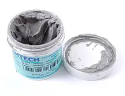 La pasta de soldar se compone principalmente de una aleación mayoritariamente de estaño microgranulado, formando esferas que pueden ir de los 20 μm a los 75 μm de diámetro. Este polvo viene mezclado con flux, así conocido habitualmente el agente químico que actúa como decapante y que ayuda a la formación de una buena soldadura. Este puede ser de base acuosa o al solvente. Juntos forman la pasta o crema de soldar que debemos depositar sobre los pads o islas de soldadura de placa de circuito impreso justo antes de la colocación de los componentes de montaje superficial.