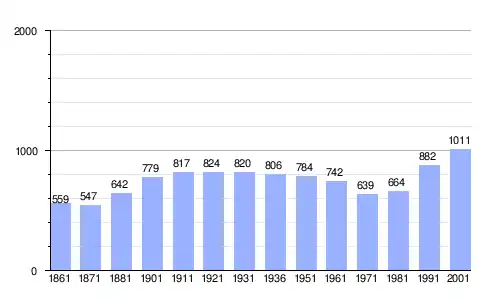 | Gráfica de evolución demográfica de Pasturana entre 1861 y 2001 |