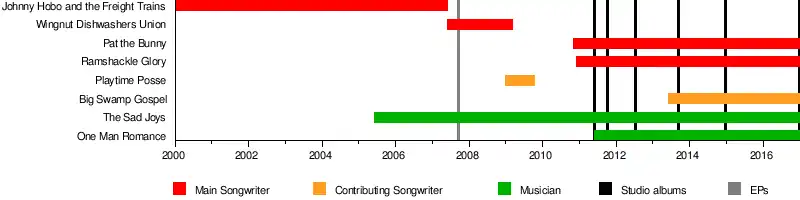 - ↑ «Live In Cortland, by Johnny Hobo & The Freight Trains». No Mans Records. Consultado el 13 de noviembre de 2018.