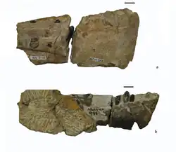 - ↑ Upchurch, P.M. (1995). «The Evolutionary History of Sauropod Dinosaurs». Philosophical Transactions: Biological Sciences 349 (1330): 365-390. Bibcode:1995RSPTB.349..365U. JSTOR 56238. doi:10.1098/rstb.1995.0125.