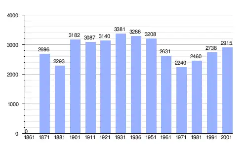| Gráfica de evolución demográfica de Patrica entre 1861 y 2001 |