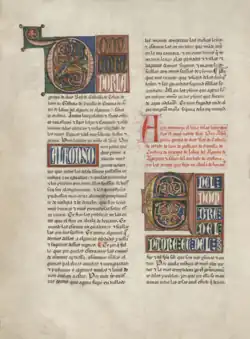 - Promulgado hacia 1235 por Rodrigo Jiménez de Rada. Sobre pergamino de 302 x 193 mm. Consta de 304 artículos, redactados en letra de tipo gótica libraria o textualis. El texto se inicia con la letra “I” (de In Nomine Patris…) habitada por un arzobispo mitrado, que sostiene un báculo en la mano derecha y un libro en la izquierda.[24][25]