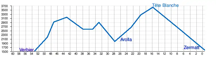 Hay dos opciones. Un trayecto montañoso extraordinario, largo y por alturas superiores al promedio, desde Zermatt hasta Verbier. Un segundo trayecto recorriendo una distancia más corta desde Arolla a Verbier, también a realizar en una sola etapa. El recorrido largo tiene más de 100 km (53 km en línea recta) con un desnivel medio de 4000 m para el ascenso y el recorrido en esquí.[2] El trayecto que parte de Arolla recorre una distancia 50 km (27 km en línea recta).