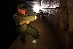 Agente de la Patrulla Fronteriza en Nogales, ArizonaLa Patrulla Fronteriza utiliza una variedad de equipos y métodos para cumplir su misión en el terreno diferente tipo. Los sensores electrónicos están colocados en lugares estratégicos a lo largo de la frontera para detectar personas o vehículos que entran al país ilegalmente. Monitores de vídeo y ámbitos de visión nocturna también se utilizan para detectar las entradas ilegales.