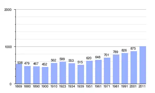 | Gráfica de evolución demográfica de Patsch entre 1869 y 2011 |