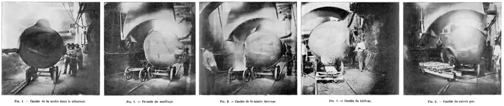 - ↑ a b c d e f g Jannettaz, Paul (1920). 560-573. «Métallurgie : bessemérisation du cuivre». Bulletin de la Société de l'Industrie Minérale. 3 XV.