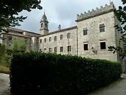 Siendo obispo de Zamora, Martín Arias, alrededor del año 1200, y viendo llegar la hora de su retiro, decidió buscar un lugar tranquilo en Galicia, su tierra natal.[1]​ Es así como decide la construcción de unos primeros edificios alrededor de 1216, en la zona extramuros de Santiago de Compostela,[2]​ entre los que destacaba la iglesia de San Lorenzo de Trasouto. Todo esto sucedió antes de 1216, el año en que se data una carta de confirmación del rey Alfonso IX relativa a la que ya es, entonces, iglesia de San Lorenzo de Trasouto.[4]