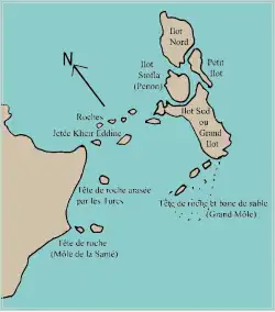 El archipiélago fue conectado a la costa de Argelia después de la expulsión de los españoles en 1529 por Jeireddín Barbarroja, formando una península artificial en la que se encuentra el dique y la entrada actual al puerto de Argel.[4]