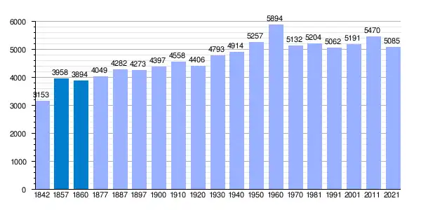 | Gráfica de evolución demográfica de Peñafiel[12] entre 1842 y 2021 |