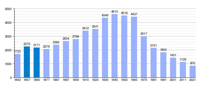 | Gráfica de evolución demográfica de Peñalsordo[6] entre 1842 y 2021 |