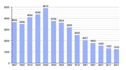 | Gráfica de evolución demográfica de Peñamellera Baja[7] entre 1897 y 2021 |