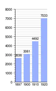| Gráfica de evolución demográfica de Peñarroya[3] entre 1897 y 1920 |