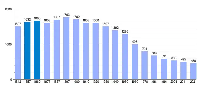 | Gráfica de evolución demográfica de Peñarroya de Tastavíns[5] entre 1842 y 2021 |