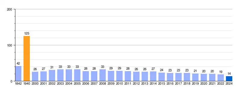 | Gráfica de evolución demográfica de Peñarrubias de Pirón[6][3] entre 1842 y 2024 |