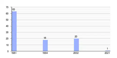 | Gráfica de evolución demográfica de Peštani entre 1981 y 2021 |