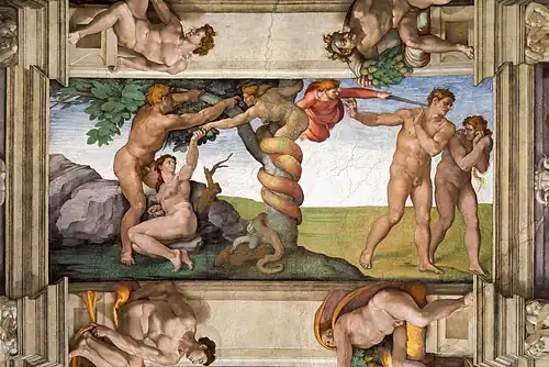 El Pecado original y expulsión del Paraíso terrenal es el sexto fresco que pintó Miguel Ángel en la Capilla Sixtina.[1]