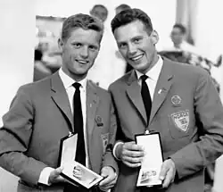 ![]() Peder Lunde (izq.) junto a Bjørn Bergvall en 1960 | |||||||||||||||||||||||||||||||||||||