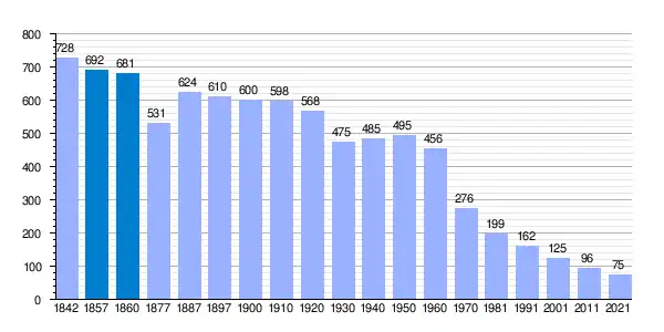 | Gráfica de evolución demográfica de Pedraza de Campos[2] entre 1842 y 2021 |