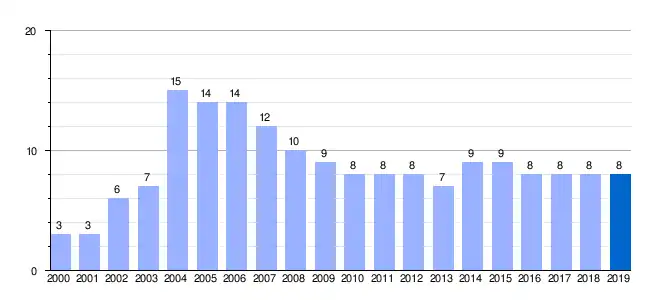 | Gráfica de evolución demográfica de Pedro Álvaro[2] entre 2000 y 2019 |