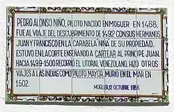 ![]() Estatua de Pedro Alonso Niño en Moguer. | ||