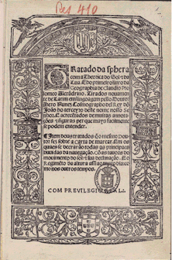 - Tratado da sphera com a Theorica do Sol e da Lua (Tratado sobre la esfera con teorías sobre sol y la Luna), (Lisboa, 1537). Única obra de Pedro Nunes (escrito "Pero Nunez" en la portada) publicada en portugués. Incluye:[8]