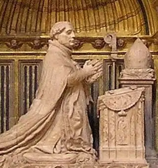 Estatua del obispo en su tumba, en la catedral de Plasencia, obra en alabastro de Francisco Giralte | ||
