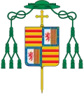 Su escudo episcopal "trae por armas un campo cuartelado en cruz: 1º y 4º, Córdoba -de oro, tres fajas de gules-, 2º y 3º, Ponce de León -de León, partido de Aragón; bordura de azur, cargada con ocho escusones de oro con una banda de azur, del linaje Vidaurre".[4]
