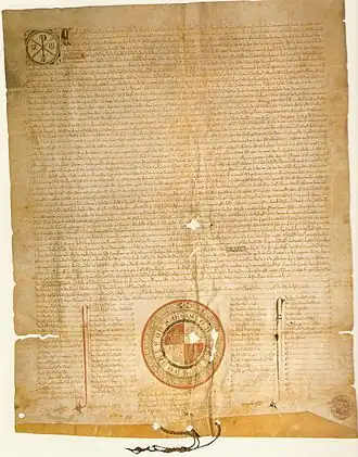 Aunque el título de canciller mayor de Castilla era «meramente honorífico», como señaló González Crespo, sí hay constancia de que en 1335 Pedro de Aguilar ordenó expedir un privilegio rodado que rubricó con la fórmula «El infante don Pedro, su fijo, lo mandó faser por mandado del dicho señor, a veinte e tres años que el sobredicho rey don Alfonso regno».[30] Pero como en esos momentos Pedro tenía unos cuatro años de edad, ello demuestra una vez más, y a juicio de dicha historiadora, el carácter «honorífico» del título de canciller, puesto que era el camarero mayor del rey, o posteriormente el lugarteniente de los privilegios rodados, el encargado de expedir esta clase de documentos.[30]