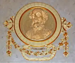 ![]() Medallón de Pedro Gumiel en el Salón de Plenos del Ayuntamiento de Alcalá de Henares. | ||