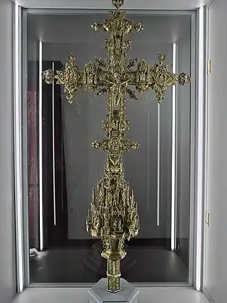 - Cruz de la Colegiata de Osuna (Sevilla).[2] Fue donada a esta institución por Juan Téllez-Girón, el Santo (IV Conde de Ureña) en 1535.[3]