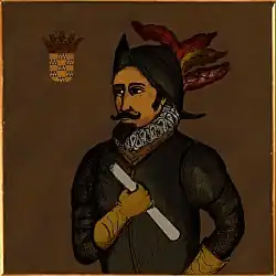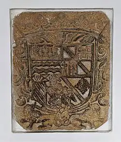 ![]() Supuesto del Capitán con escudo de armas de su familia. | ||