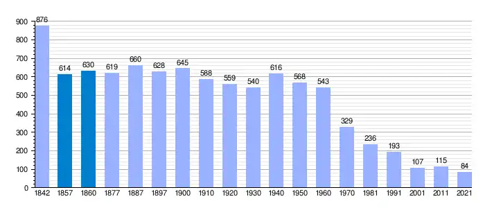 | Gráfica de evolución demográfica de Pedroso de Acim[5] entre 1842 y 2021 |