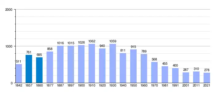 Hacia mediados del siglo XIX, el lugar tenía contabilizada una población de 511 habitantes.[6] La localidad aparece descrita en el decimosegundo volumen del Diccionario geográfico-estadístico-histórico de España y sus posesiones de Ultramar de Pascual Madoz de la siguiente manera: