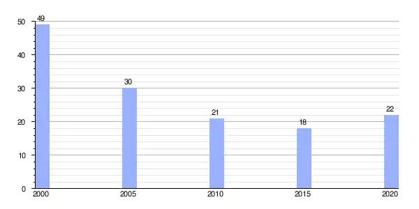 | Gráfica de evolución demográfica de Peites (aldea) entre 2000 y 2020 |