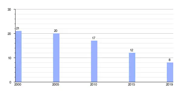 | Gráfica de evolución demográfica de Peizais entre 2000 y 2019 |