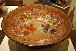 En México, las peleas de gallos forman parte de la cultura y tradiciones de la mayoría de los estados, las aves combaten distinguiendo al partido que las aporta mediante los colores rojo y verde por eso suele ser común ver colgar del cinturón un pañuelo o distintivo alusivo a estos colores, además de ser un negocio en donde se combinan la venta, el espectáculo de los gallos y los espectáculos musicales. En casi todas las ferias y fiestas regionales de los municipios del país se llevan a cabo, en recintos llamados «palenques» de gallos.[20] Estos constan de un ruedo hecho de madera denominado anillo cuyo centro se encuentra repleto de tierra compactada para el mejor desempeño de los gallos. En el centro es marcado con cal un cuadro de 4 metros por lado y unas líneas que atraviesan de centro a centro cada lado. Finalmente es marcado en el centro de esta arena el último cuadro, que mide 40 cm de lado, a donde se llevan los gallos la tercera vez que se sueltan. Los estados mexicanos donde las peleas de gallos son más comunes son Michoacán, Aguascalientes, Jalisco, Sinaloa y Veracruz, solo existe prohibición en la capital del país, Ciudad de México,[21] en Sonora, en Coahuila desde el 11 de septiembre de 2012 y en Veracruz desde el 6 de noviembre de 2018.[22]