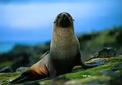 Los animales de la Antártida viven de los alimentos que encuentran en el mar -no en tierra- e incluyen aves marinass, focass y pingüinoss. Entre las focas se encuentran: foca leopardo (Hydrurga leptonyx), foca de Weddell (Leptonychotes weddellii), el enorme elefante marino del sur (Mirounga leonina), y foca cangrejera (Lobodon carcinophagus).[10]
