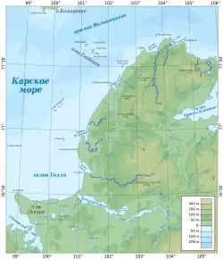 - ↑ Entrada «Таймыр (полуостров)» de la Gran Enciclopedia Soviética, disponible en ruso en: [1] Archivado el 6 de noviembre de 2013 en Wayback Machine.