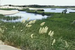 Gran parte dela península de Pouto -más de 600 hectáreas- está cubierta por dunas, que constituyen uno de los mayores sistemas de dunas no modificadas de Nueva Zelanda. Muchas de las dunas se elevan más de 100 m sobre el nivel del mar, y la más alta alcanza los 214 m. También hay humedales permanentes y temporales, y más de 20 lagos de agua dulce y pantanos.[3] El interior está poblado de bosques exóticos.[4]