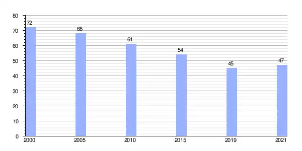 | Gráfica de evolución demográfica de Pena (aldea) entre 2000 y 2021 |