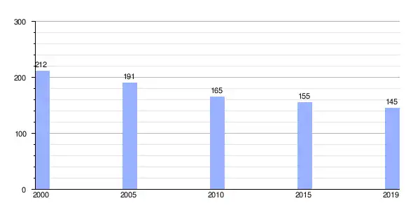 | Gráfica de evolución demográfica de Penarrubia (aldea) entre 2000 y 2019 |