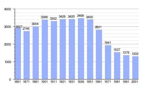 | Gráfica de evolución demográfica de Penna San Giovanni entre 1861 y 2001 |