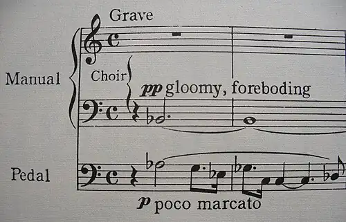 En la música escrita para órgano en ocasiones se emplea un sistema que se compone de tres pentagramas, de los cuales se destinan uno para cada mano sobre los teclados y el tercero para las indicaciones de los pies sobre los pedales.