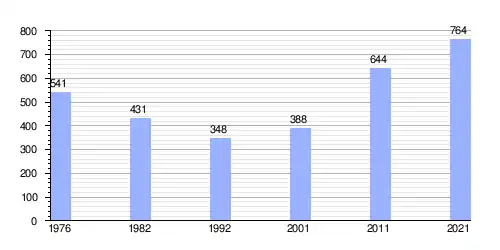 Hasta 2021 la población era de 764 habitantes,[2] con una densidad de población de 39,61 habitantes por kilómetro cuadrado.[2]