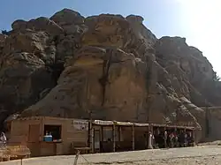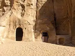 En esta área abierta, muchas de las paredes de arenisca tienen aberturas talladas en ellas; fueron utilizados como viviendas. En la pared sur hay un triclinio con columnatas y un pórtico y un voladizo saliente y que los arqueólogos creen que fue utilizado como un templo, aunque saben muy poco al respecto.[2]