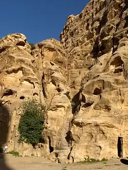 Al igual que Petra, es un sitio nabateo, con edificios tallados en las paredes de cañones de arenisca. Como su nombre lo indica, es mucho más pequeña, ya que consta de tres áreas abiertas más anchas conectadas por un cañón de 450 metros. Forma parte del parque arqueológico de Petra, aunque se accede por separado, y se incluye en la inscripción de Petra como un sitio de patrimonio de la Humanidad de la UNESCO.[1] A menudo es visitado por turistas en colaboración con Petra, ya que es gratuita su entrada y usualmente tiene menos gente.[2]