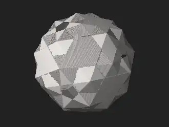 Las 40 caras triangulares que proceden del achatado están dispuestas en 20 pares coplanares, integradas en hexágonos con forma de estrella que no son del todo regulares. A diferencia de la mayoría de los poliedros romos, tiene simetrías de reflexión.