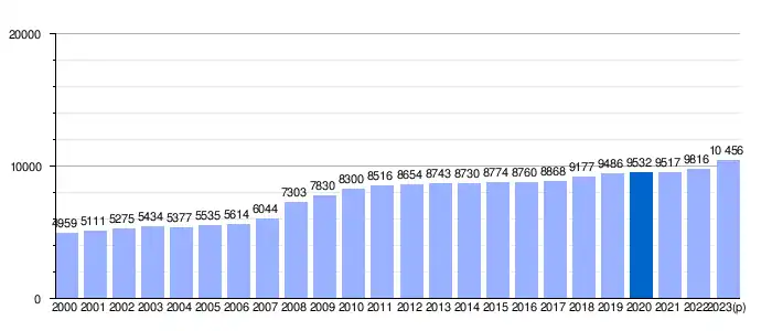 | Gráfica de evolución demográfica de Perales del río (barrio) entre 2000 y 2023(p) |